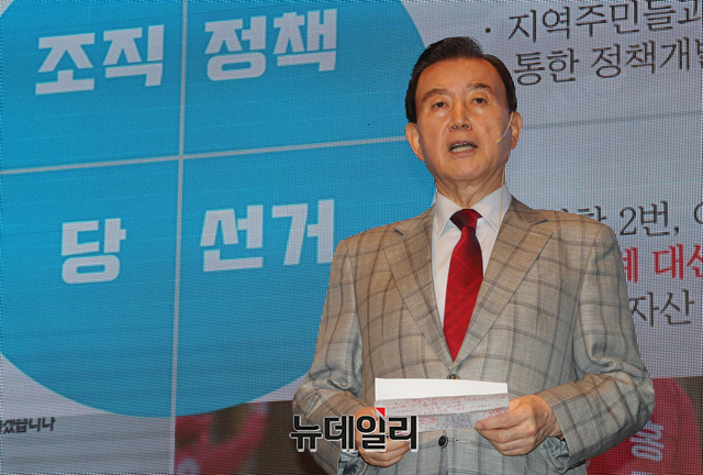 국민의힘 당 대표로 출마한 홍문표 후보가 25일 오전 서울 마포구 누리꿈스퀘에서 열린 1차 전당대회에서 비전발표를 하고 있다. (사진=공동취재단)