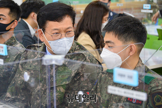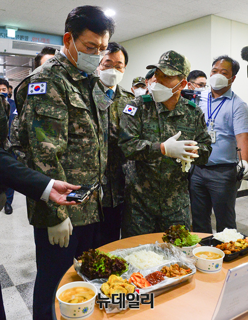 [포토] 장병들과 식사하는 송영길 더불어민주당 대표