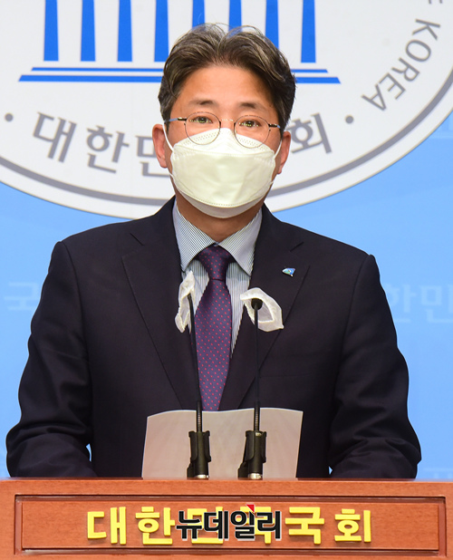 김진욱 더불어민주당 대변인이 27일 오후 국회 소통관에서 현안 관련 브리핑을 하고 있다.