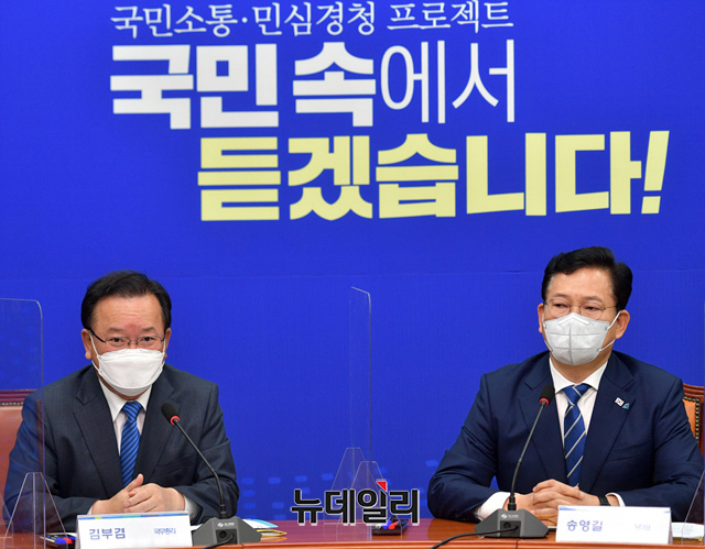 김부겸 국무총리가 28일 오전 국회에서 열린 고위 당정청협의회의에 참석해 모두발언을 하고 있다. (사진=공동취재단)