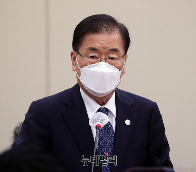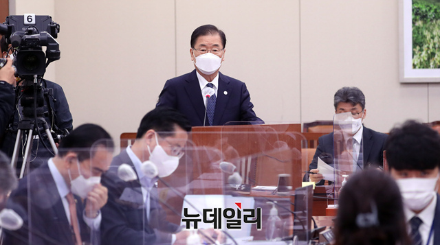정의용 외교부장관이 28일 오전 국회에서 열린 외교통일위원회 전체회의에 출석해 현안보고를 하고 있다. (사진=공동취재단)