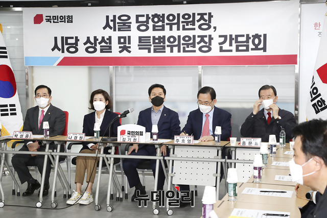 국민의힘 '본경선 진출 당대표 후보자 초청 간담회'가 28일 서울 여의도 국민의힘 당사에서 열린 가운데 김기현 원내대표가 인사말을 하고 있다. (사진=국민의힘)