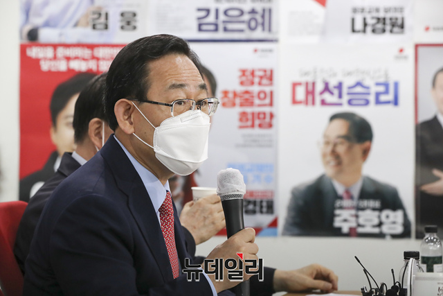국민의힘 '본경선 진출 당대표 후보자 초청 간담회'가 28일 서울 여의도 국민의힘 당사에서 열리고 있다. 이날 행사에는 나경원, 주호영, 홍문표 후보가 참석했다. (사진=국민의힘)
