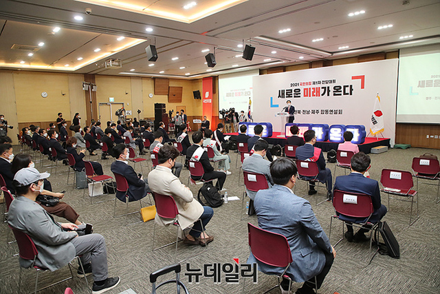김기현 국민의힘 원내대표가 30일 오후 광주 서구 김대중컨벤션센터에서 열린 1차 전당대회 광주·전북·전남·제주 합동 연설회에서 인사말을 하고 있다. (사진=국민의힘)