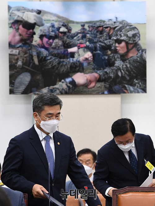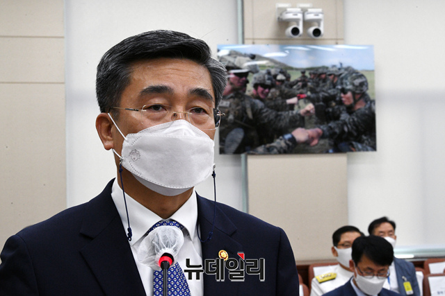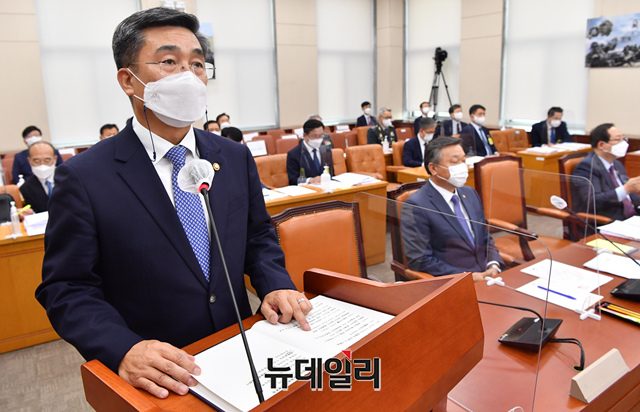 서욱 국방부 장관이 31일 오전 국회에서 열린 국방위원회 전체회의에서 인사말을 하고 있다. (사진=공동취재단)