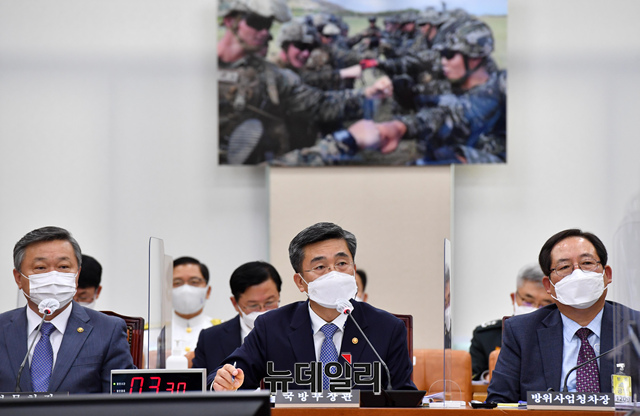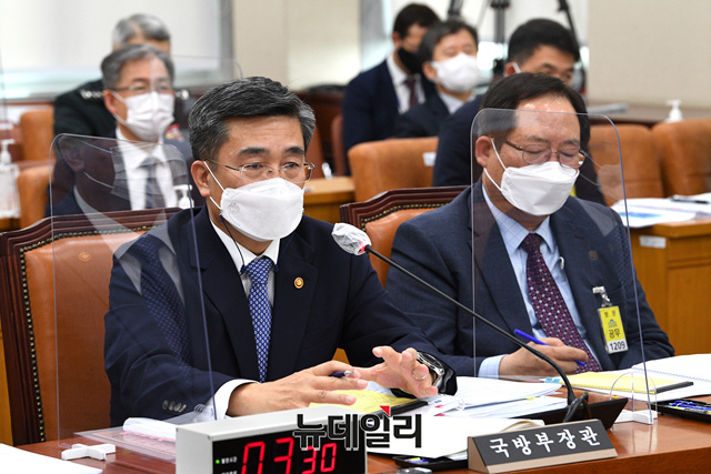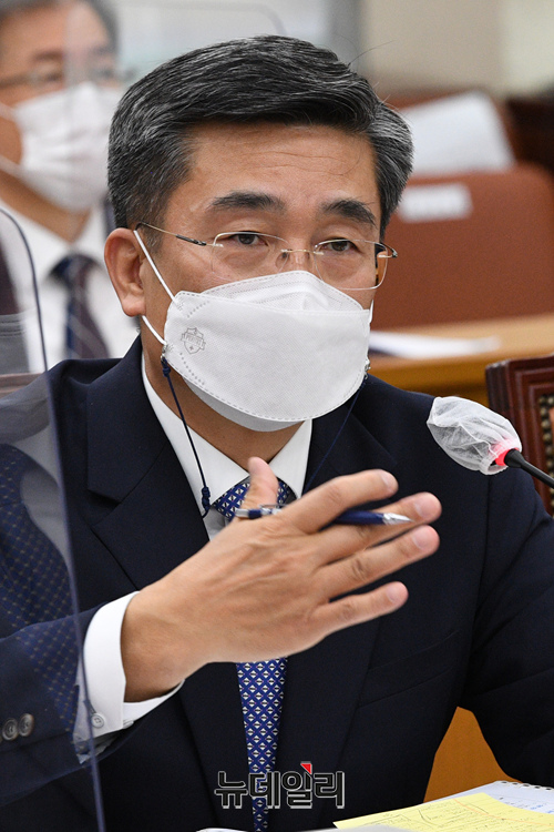 서욱 국방부 장관이 31일 오전 국회에서 열린 국방위원회 전체회의에 출석해 의원들의 질문에 답하고 있다. (사진=공동취재단)