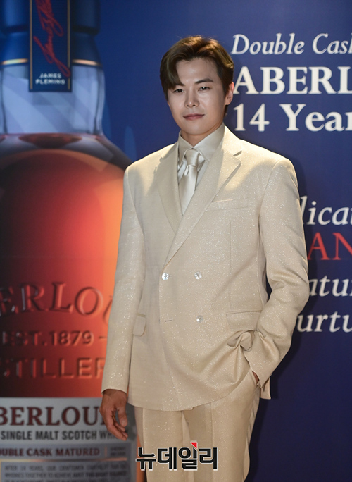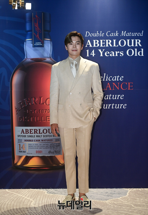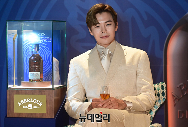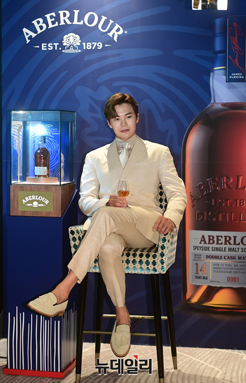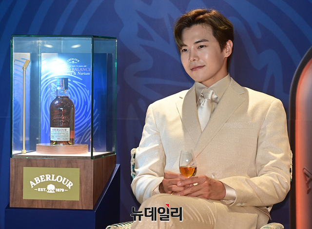 배우 박은석이 1일 오전 서울 여의도 페어몬트 앰배서더 서울 호텔에서 열린 싱글몰트 위스키 아벨라워 14년 출시 행사에 참석해 포토타임을 갖고 있다.