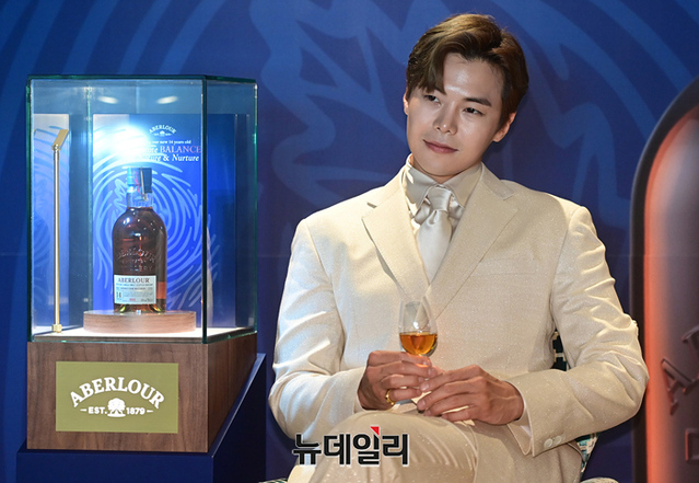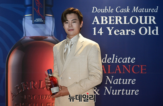 배우 박은석이 1일 오전 서울 여의도 페어몬트 앰배서더 서울 호텔에서 열린 싱글몰트 위스키 아벨라워 14년 출시 행사에 참석해 포토타임을 갖고 있다.