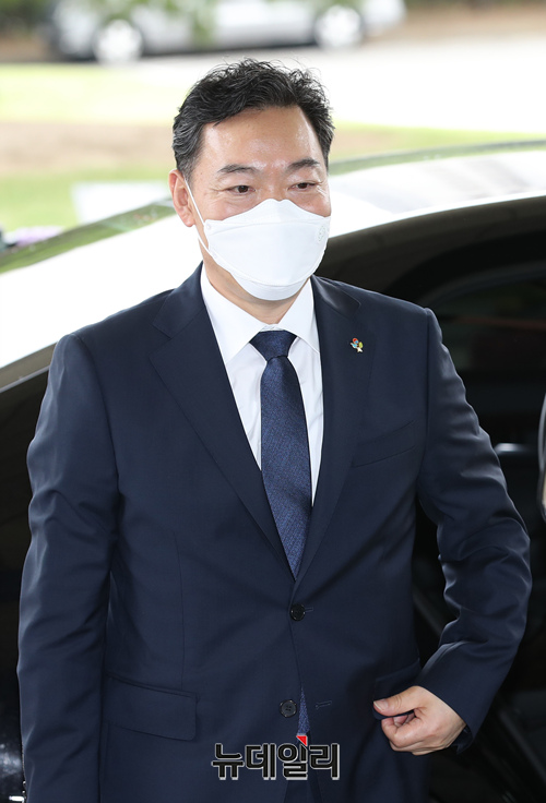 김오수 신임 검찰총장이 1일 오후 서울 서초동 대검찰청 청사에 첫 출근을 하고 있다.