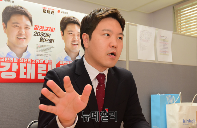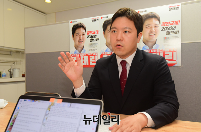 국민의힘 6·11 전당대회 청년최고위원 경선에 출마한 강태린 후보가 1일 오후 서울 여의도 강 후보 사무실에서 뉴데일리와 인터뷰를 갖고 있다.