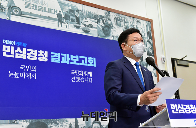 송영길 더불어민주당 대표가 2일 오전 국회에서 국민소통·민심경청 프로젝트 대국민 보고를 하고 있다. (사진=공동취재단)