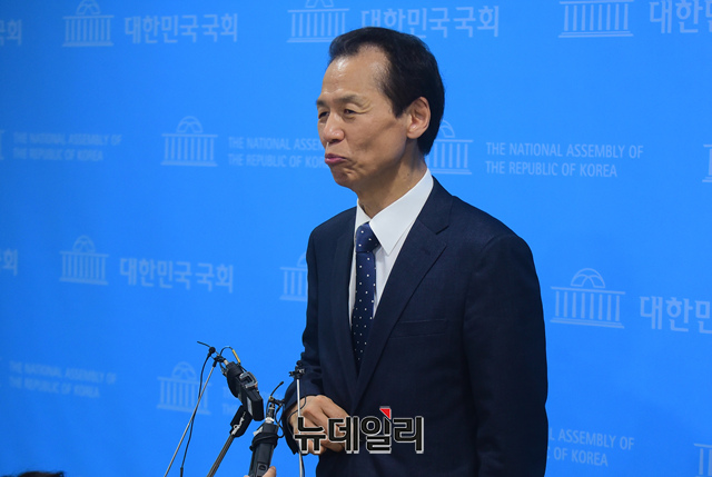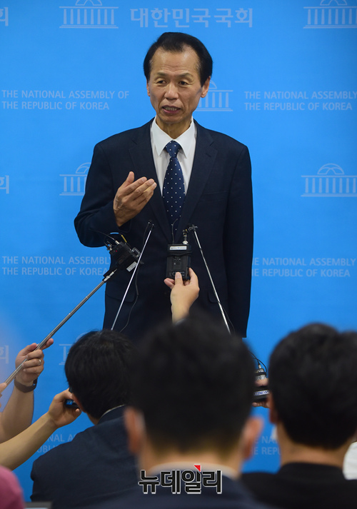 최문순 강원도지사가 3일 오후 국회 소통관에서 대선출마 선언 기자회견을 마치고 기자들의 질문에 답하고 있다.