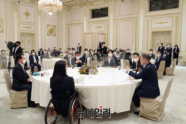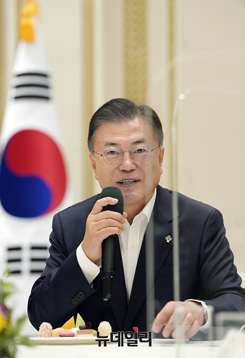 문재인 대통령이 3일 오전 서울 종로구 청와대 영빈관에서 열린 더불어민주당 초선의원 초청 간담회에 참석하고 있다. (사진=청와대)