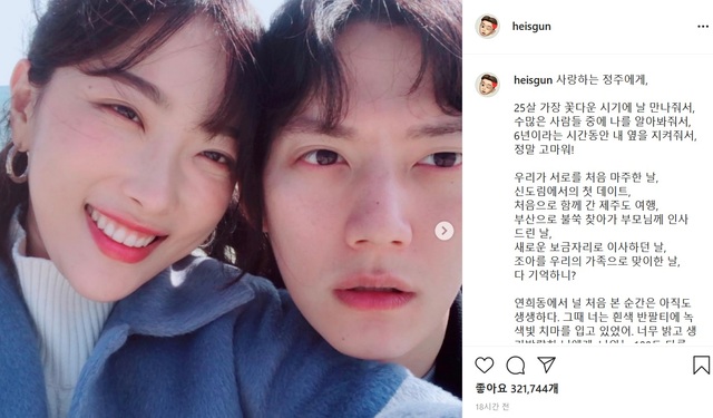 새벽의 남자친구 A씨는 지난 6일 자신의 인스타그램 계정에 "25살 가장 꽃다운 시기에 날 만나줘서, 수많은 사람들 중에 나를 알아봐줘서, 6년이라는 시간동안 내 옆을 지켜줘서, 정말 고마워"라는 글로 시작하는 장문의 편지를 써 내려갔다.