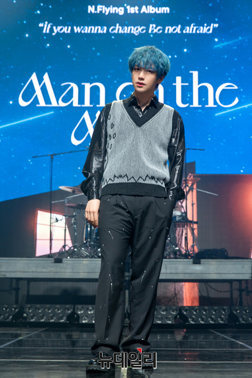 엔플라잉 김재현이 7일 오후 서울 광진구 예스24 라이브홀에서 온라인으로 진행된 첫 정규앨범 'Man of the Moon' 쇼케이스에서 포토타임을 갖고 있다.