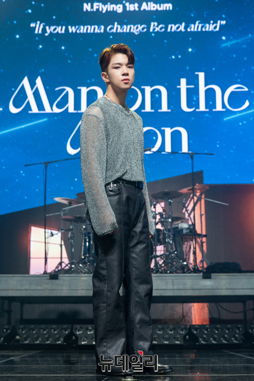 그룹 엔플라잉 유회승이 7일 오후 서울 광진구 예스24 라이브홀에서 온라인으로 진행된 첫 정규앨범 'Man of the Moon' 쇼케이스에서 포토타임을 갖고 있다.