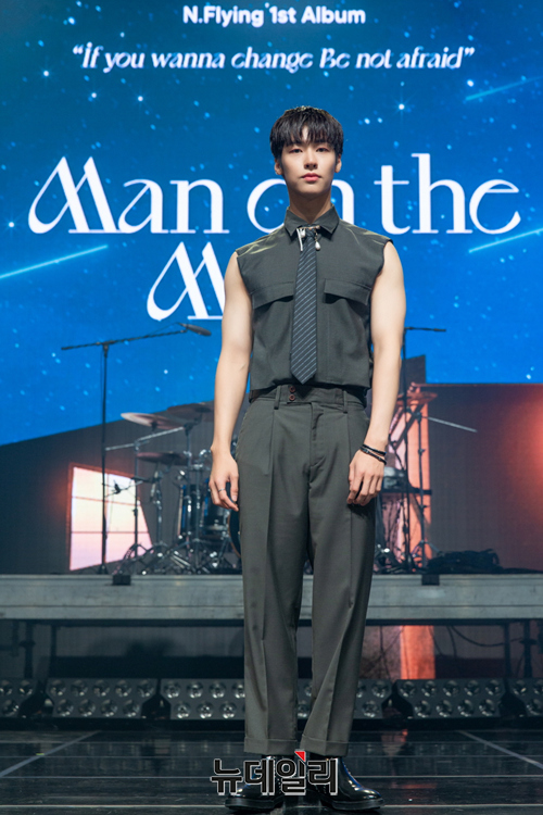 그룹 엔플라잉 이승협이 7일 오후 서울 광진구 예스24 라이브홀에서 온라인으로 진행된 첫 정규앨범 'Man of the Moon' 쇼케이스에서 포토타임을 갖고 있다.