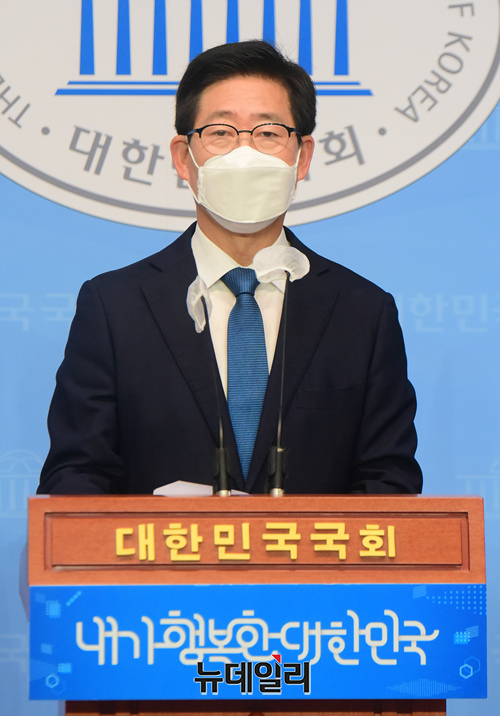 대선 출마 선언을한 양승조 충남지사가 3일 오전 국회 소통관에서 기자회견을 갖고 정책을 발표하고 있다.