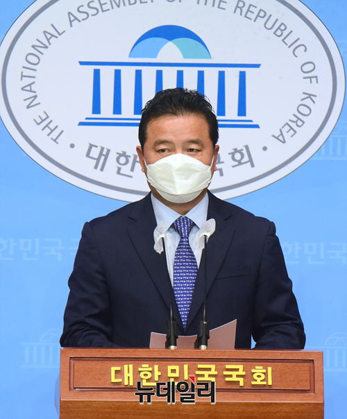 업무상 비밀을 이용해 땅을 매입한 의혹을 받는 임종성 더불어민주당 의원이 9일 오전 국회 소통관에서 기자회견을 갖고 탈당을 선언한 뒤 인사하고 있다. 임 의원은 국회 국토교통위 소속이던 2018년 친인척과 보좌관 등이 경기도 광주 고산2택지지인근땅을 공동 매입해 큰 이익을 본 것으로 알려 졌다.