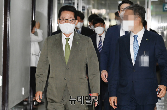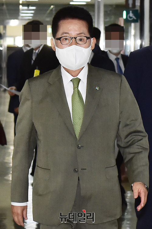 박지원 국정원장이 9일 오전 국회 정보위원회에서 열린 국정원 불법사찰에 대한 자체 감찰 결과 보고를 위해 회의실에 입장하고 있다. (사진=공동취재단)