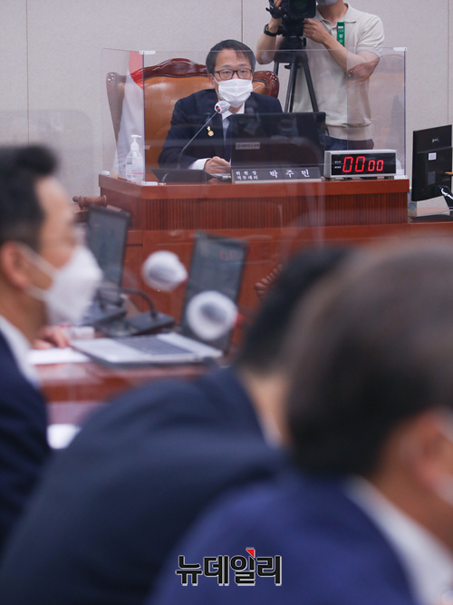 박주민 법사위원장 직무대리 9일 오전 국회에서 열린 법제사법위원회 전체회의에서가 의사봉을 두드리고 있다. (사진=공동취재단)
