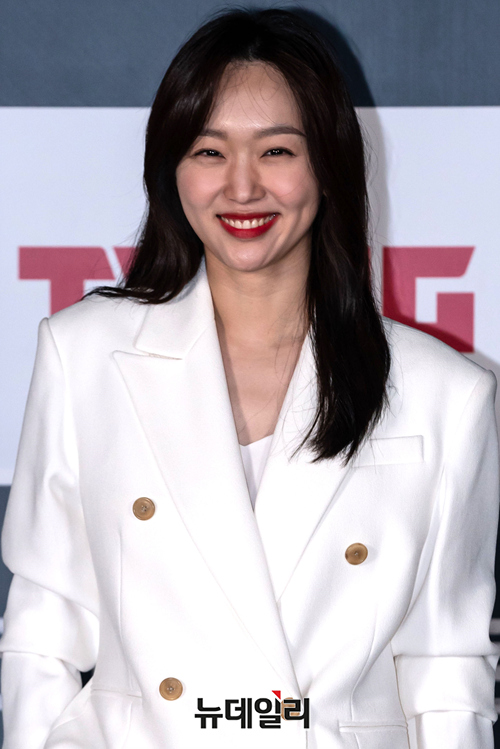 배우 진기주가 9일 오후 온라인으로 진행된 영화 '미드나이트(감독 권오승)' 제작보고회에서 포토타임을 갖고 있다.