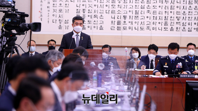 서욱 국방부 장관이 10일 오전 국회에서 열린 법제사법위원회 전체회의 공군 성추행 사건 관련 긴급현안질의에 출석해 현안보고를 하고 있다. (사진=공동취재단)