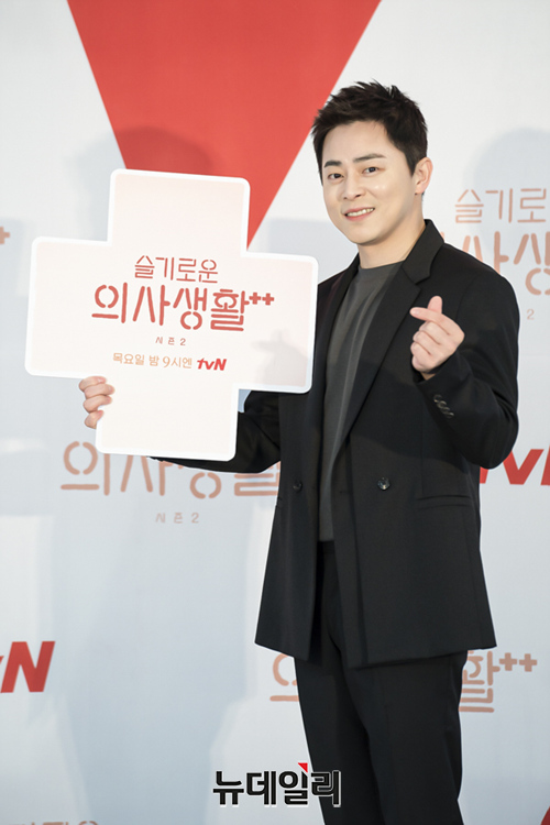 배우 조정석이 10일 오후 온라인으로 열린 tvN 드라마 '슬기로운 의사생활 시즌2(연출 신원호, 극본 이우정)' 제작발표회에서 포토타임을 갖고 있다.
