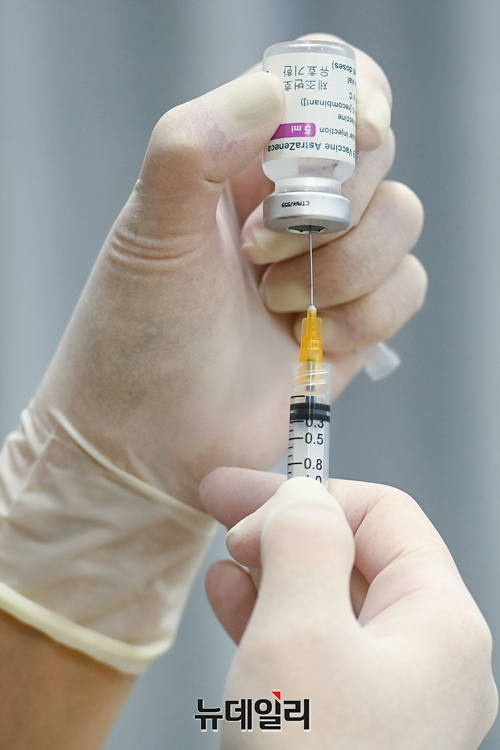 이비인후과 전문의가 11일 오후 서울 동작구의 한 병원에서 아스트라제네카 백신 접종을 준비하고 있다.