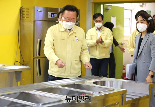 [포토] 학교 방역상황 점검 나선 김부겸 국무총리