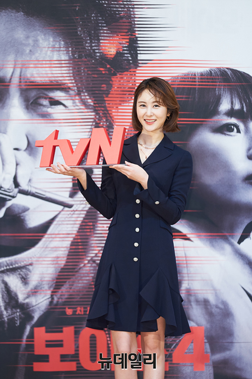 배우 손은서가 14일 오후 온라인으로 진행된 tvN 금토드라마 '보이스4: 심판의 시간(연출 신용휘, 극본 마진원)' 제작보고회에서 포즈를 취하고 있다.