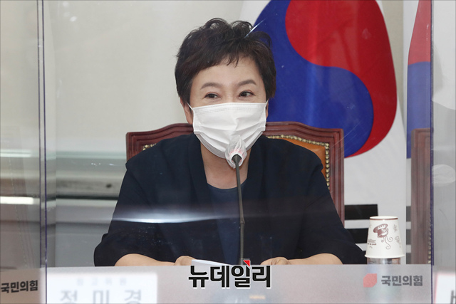 정미경 국민의힘 최고위원이 14일 오후 국회에서 열린 국민의힘 최고위원회의에 참석해 모두발언을 하고 있다. (사진=공동취재단)