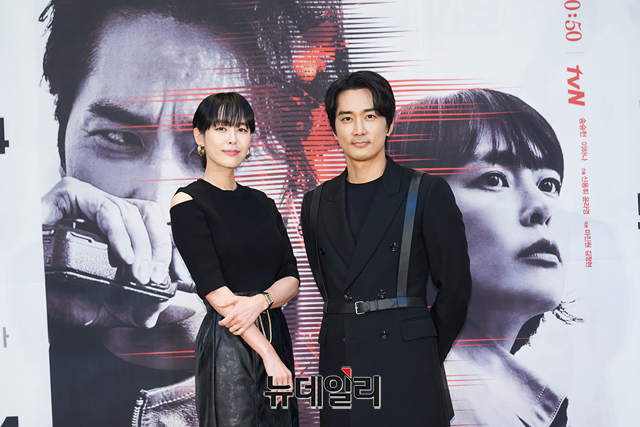 배우 이하나가 14일 오후 온라인으로 진행된 tvN 금토드라마 '보이스4: 심판의 시간(연출 신용휘, 극본 마진원)' 제작보고회에서 포즈를 취하고 있다.