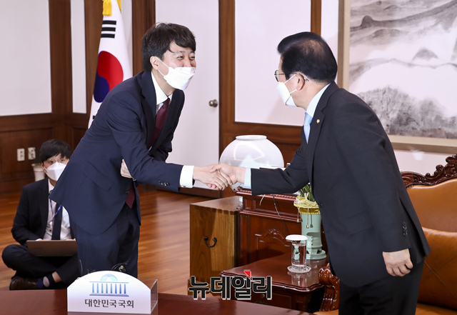 [포토] 박병석 국회의장 찾은 이준석 국민의힘 대표