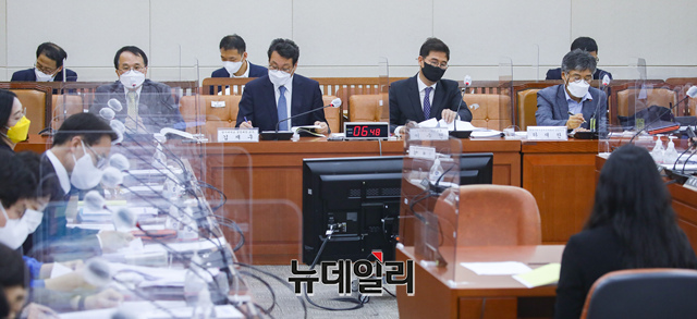 권재열 경희대학교 법학전문대학원 교수가 15일 오전 국회 기획재정위원회 전체회의에서 열린 사회적경제기본법안에 대한 공청회에서 발언을 하고 있다. (왼쪽부터 권 교수, 김재구 명지대학교 교수, 이수천 건국대학교 겸임교수, 하재찬 한국사회적경제연대회의 상임이사) (사진=공동취재단)