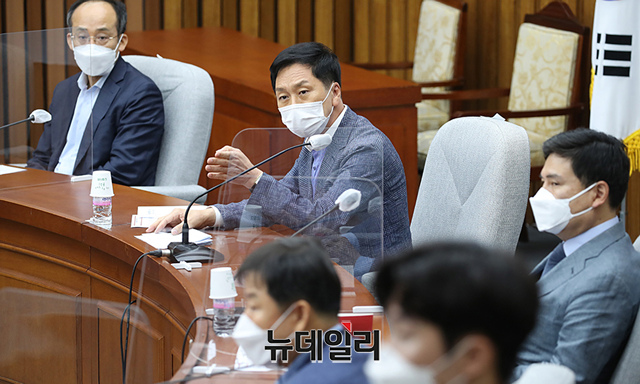 김기현 국민의힘 원내대표가 15일 오전 국회에서 열린 원내대책회의에 참석해 모두발언을 하고 있다. (사진=국민의힘)