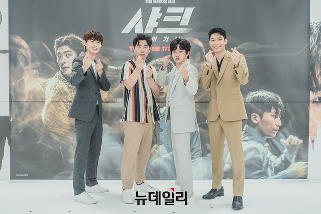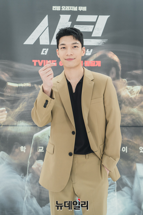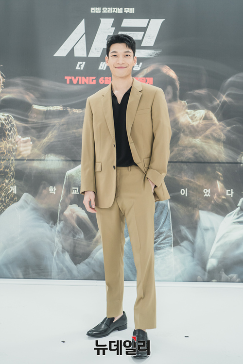 배우 위하준이 15일 오후 온라인으로 열린 티빙 오리지널 무비 '샤크 : 더 비기닝(감독 채여준, 각본 민지)' 제작보고회에서 포토타임을 갖고 있다.
