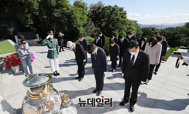 [포토] 역대 대통령 묘역 참배하는 이준석 국민의힘 대표