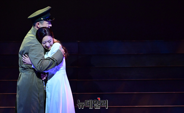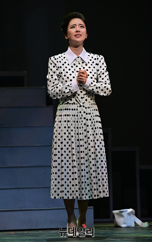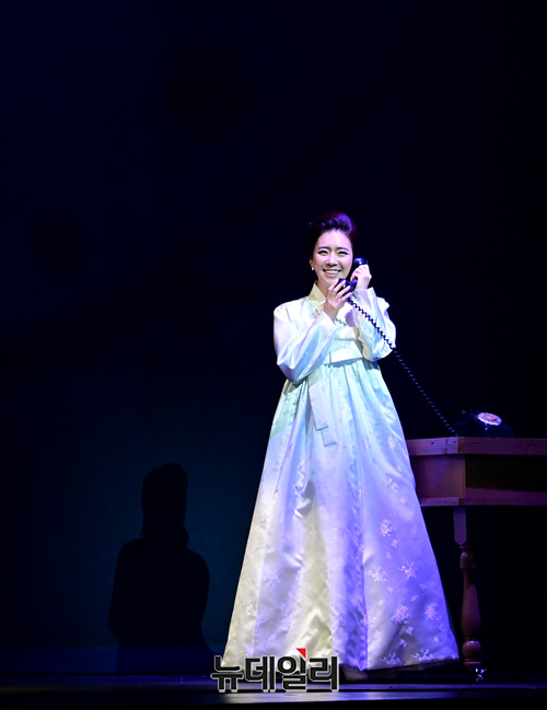 가수 송민경이 공연을 하루 앞둔 16일 오후 서울 강남구 LG아트센터에서 뮤지컬 박정희 최종 리허설 무대를 선보이고 있다. 송민경은 육영수 역을 맡았다.