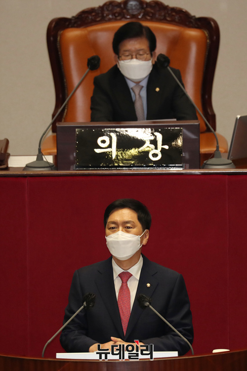 김기현 국민의힘 원내대표가 17일 오전 국회에서 열린 본회의에서 교섭단체 대표연설을 하고 있다. (사진=공동취재단)