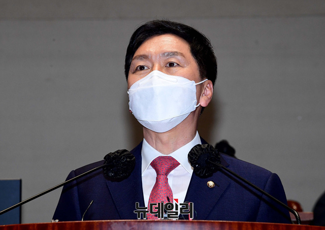 김기현 국민의힘 원내대표가 17일 오전 국회에서 열린 긴급 의원총회에서 모두발언을 하고 있다. (사진=공동취재단)