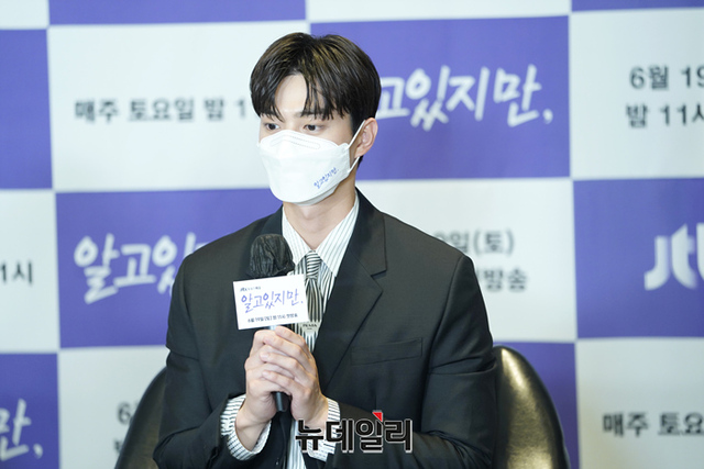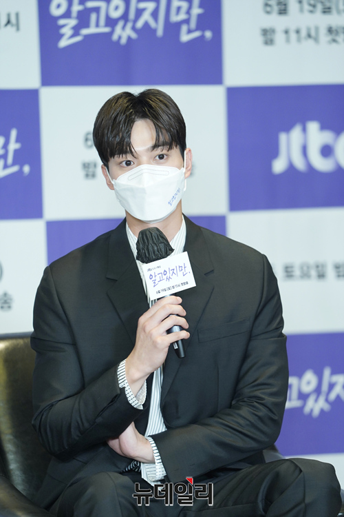 배우 송강이 18일 오후 온라인으로 열린 JTBC는 새 토요스페셜 '알고있지만(정원 극본, 김가람 연출)' 제작발표회에서 인사말을 하고 있다.