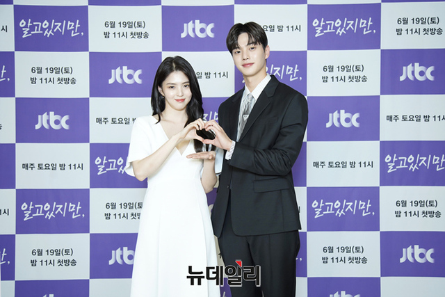 '알고있지만'은 동명의 인기 웹툰을 원작으로 사랑은 못 믿어도 연애는 하고 싶은 여자 유나비(한소희)와 연애는 성가셔도 썸은 타고 싶은 남자 박재언(송강)의 로맨스 드라마다. 19일 밤 11시 첫 방송. (사진=JTBC)