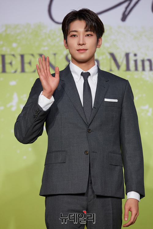 아이돌그룹 세븐틴 멤버 원우가 18일 오후 온라인으로 진행된 미니앨범 8집 'Your Choice(유어 초이스)' 발매기념 기자간담회에서 포즈를 취하고 있다.