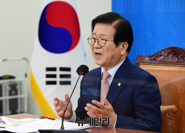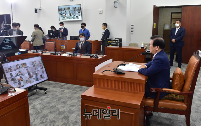 박병석 국회의장이 21일 오전 국회에서 열린 취임 1주년 화상기자간담회에서 발언을 하고 있다. (사진=공동취재단)