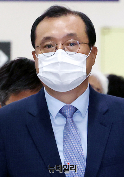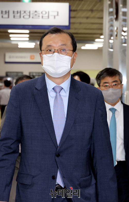 직권남용 권리행사방해 혐의로 기소된 임성근 전 부산고법 부장판사가 21일 오후 서울 서초구 서울고등법원에서 열린 항소심 공판에 출석하고 있다.