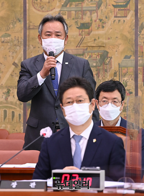 이기흥 대한체육회장이 21일 오후 국회에서 열린 문화체육관광위원회 전체회의에서 의원의 질문에 답하고 있다. (사진=공동취재단)