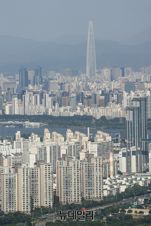 서울지역 아파트 매수심리가 5주 연속 상승하고 있는 21일 오후 서울 여의도 63스퀘어를 찾은 시민이 한강을 살펴보고 있다. KB부동산에 따르면 서울지역의 주간 매수우위 지수(주택가격심리지수)는 14일 기준으로 97.7을 기록했다. 이는 지난달 10일 기준 86.1 이후 5주 연속으로 상승한 수치다.