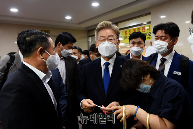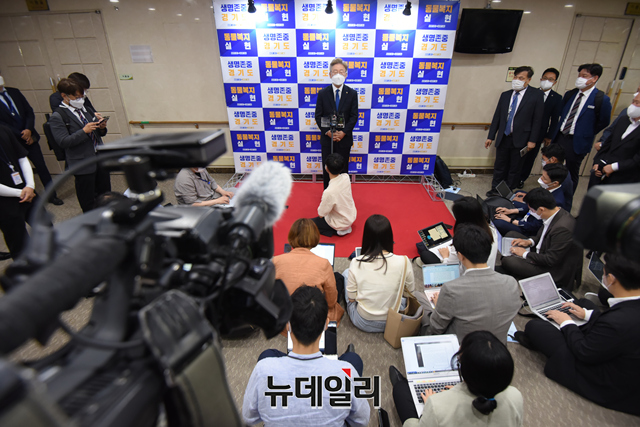 이재명 경기지사가 22일 오전 서울 여의도 이룸센터에서 열린 '경기도, 개식용 및 반려동물 매매 제도개선 국회토론회'를 마치고 취재진 질문을 듣고 있다.