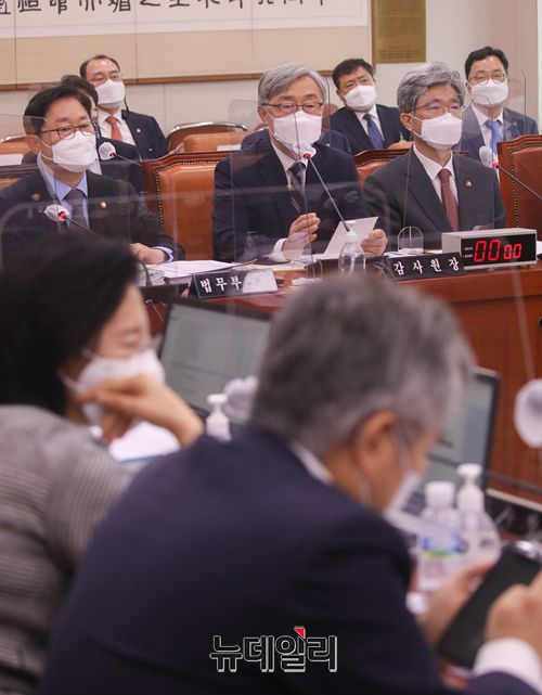최재형 감사원장이 18일 오전 국회에서 열린 법제사법위원회 전체회의에서 의원들의 질의에 답변하고 있다. (사진=공동취재단)
